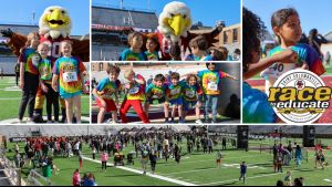 A timed 1K race, which is about 0.62 miles, for children ages 5 to 11 starts in Alumni Stadium, includes a quick loop outside the stadium and finishes on the football field back at the starting line.