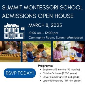 Learn more information and RSVP by visiting the event-specific website at https://summitmontessori.org/winter-2025-open-house-registration/ or browse our main website at summitmontessori.org.