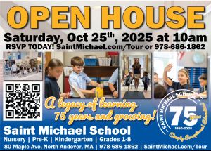 This year, Saint Michael School in North Andover is proudly celebrating 75 years of providing an exceptional Catholic education to generations of students and wants to invite you to celebrate with them!All prospective families are invited to their next Open House on Saturday, October 25th, at 10:00 a.m. RSVP online at www.SaintMichael.com/Tour or by calling the main office at 978-686-1862.