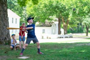 Grab a scorecard and chart your progress as you see how far you can hit an 1830s baseball, how long you can balance on a set of stilts, and how many targets you can hit.