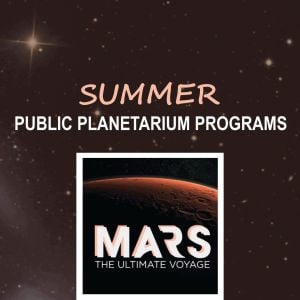 Join us for summer public planetarium programs! Programs feature live presentations of current astronomy topics paired with various planetarium films. Program runtime is 60-75 minutes. Planetarium Film: Fly Me to the Moon