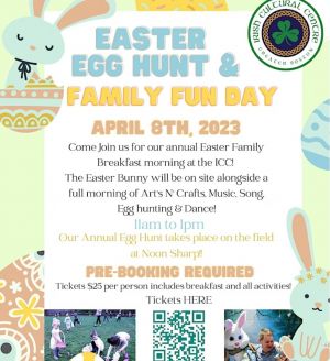 Come Join us for our Easter Family Breakfast morning at the ICC!The Easter Bunny will be on site alongside a full morning of Art's N' Crafts, Music, Song & Dance!