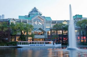 Boat departs from CambridgeSide; dock is located outside the Food Court doors.