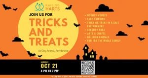 Hosted by Raising Harts and City Arena, Tricks + Treats is an opportunity to enjoy a safe and inclusive Halloween experience!Join us for bouncy houses, immersive art, face painting, balloon artists, games, treats, and all kinds of fall activities!