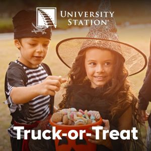 University Station will host the center’s annual Truck-or-Treat Halloween Party on Saturday, October 28 from 11 a.m. to 1 p.m. Attendees will enjoy music, trick-or-treating, giveaways, and a special character meet-and-greet!There will also be a variety of construction trucks for children of all ages to explore.