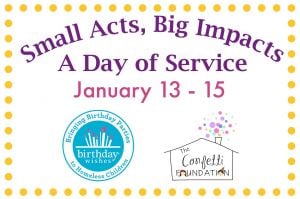 All birthday supply donations will benefit Birthday Wishes and The Confetti Foundation.