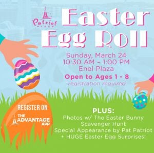 The Easter Bunny arrives early at Patriot Place! Join us for an Easter Egg Roll on Friday, April 18 from 11:00 AM – 5:00 PM on the North End Zone Plaza across from the Patriots ProShop. We are expecting it to be an egg-citing day filled with adventure and joy!