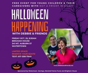 Halloween Happening is a FREE event for young children and their caregivers held at the Brigham House.It's a wonderful community gathering with a Debbie and Friends concert, arts and crafts, and Halloween goodies.