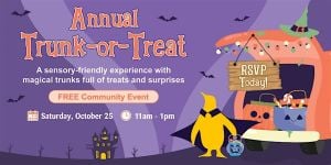 Join Bierman Autism Centers for an unforgettable morning of excitement and enchantment!Get ready for our Annual Trunk-or-Treat, a FREE experience with magical trunks full of treats and surprises designed to be sensory-friendly and full of fun!