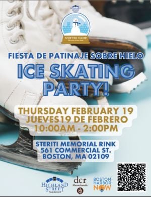 Calling one and all for a *free* day of ice skating, music, and fun at DCR's Steriti Memorial Rink in Boston's historic North End!Join us from 10:00 am - 2:00 pm for free skating and snacks!