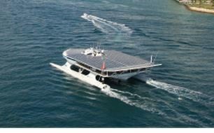 The 113-foot PlanetSolar boat features more than 5,000 square feet of photovoltaic cells and a maximum speed of 14 knots.