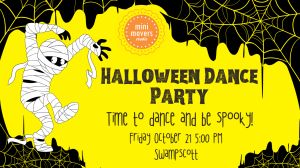 Join Mini Movers Studio for a Spooky Halloween Dance Party for ages 4-10!Event will include a Halloween themed dance class with choregraphy, a painting craft, Halloween themed games, snacks and a spook-tacular take home treat!