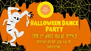 Join Mini Movers Studio for our annual Spooky Halloween Dance PartyEvent!Event will include a Halloween themed dance class and choreography, a painting craft, Halloween games, snacks and spook-tacular take home treat.