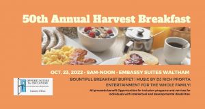 WALTHAM, Mass., Oct. 5, 2022 - Opportunities for Inclusion - (OFI) will host our '50th Annual Harvest Breakfast' at the Embassy Suites by Hilton Waltham on October 23, 2022, as part of ADHD Awareness Month and Down Syndrome Awareness Month in October.The event was originally started by the Waltham Lion's Club.