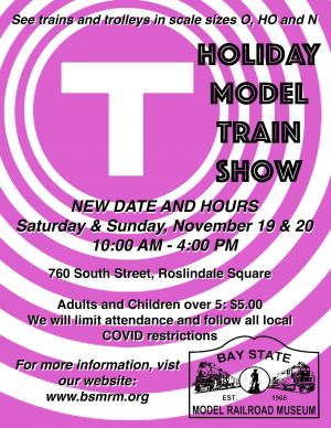 Info changes frequently. We cannot warrant it. Verify with Model Train Open House at Bay State Model Railroad Museum before making the trek. If you find an error, please report it...