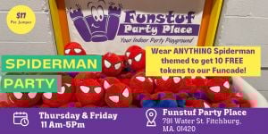 #SpiderManDay #UnleashTheHeroWithin #fitchburgma #leominsterma #ages5to12 #funthingstodowithkids #funevents #funstuff #funstufpartyplace #worcesterma #bostonma #spiderman