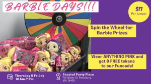 🎉👸 Calling all parents and little princesses!👑 Join us for enchanting Barbie Days this Thursday and Friday, July 27 & 28, from 10 AM to 7 PM at Funstuf Party Place!