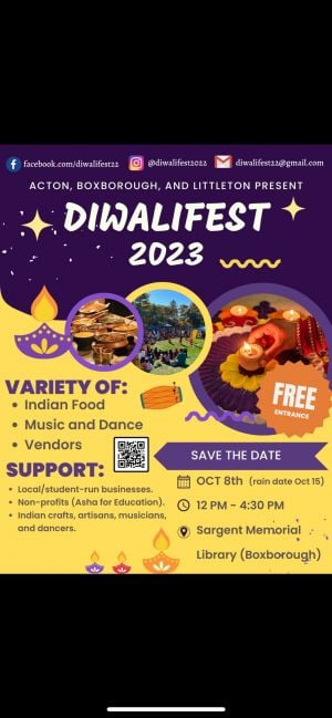 Diwalifest is a youth-run community based event dedicated to fostering community connections in Acton/Boxborough/Littleton, MA, and cultural knowledge following the inclusion Diwali as a holiday on local school calendars.This event is a local, non-profit mela (fair/festival) with the goal of celebration of Diwali as a community.