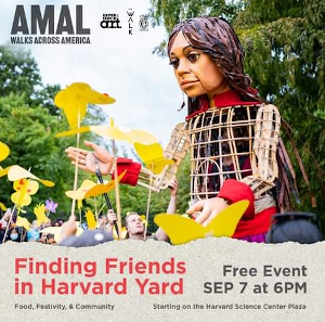 6PM, Harvard’s Science Center Plaza: Get ready to welcome Amal with free food, artistic creation, and opportunities to learn more about the international refugee crisis