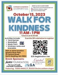 Join us for a fun-filled day at Ipswich River Park in North Reading, MA, USA, as we come together to spread kindness!The Walk for Kindness is an exciting event where we can celebrate the power of compassion and make a positive impact on our community.