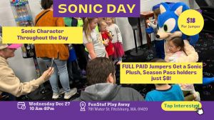 🦔💨 Attention speedster parents! 💨🦔Get ready to rev those engines because Sonic the Hedgehog is taking over FunStuf Play Away on Wednesday, Dec 27!