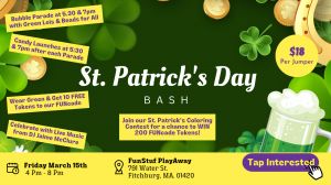Hey FunStuf Families!Get ready for a blast of shamROCKin' fun at FunStuf PlayAway's St. Patrick's Day Bash on Fri, Mar 15th, from 4-8 pm!