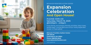Come join us at Behavior Frontiers Autism Center - Chelmsford for a day filled with fun and excitement!Our expansion celebration and open house is the perfect opportunity to learn more about our services, meet our team, and explore our state-of-the-art facility.