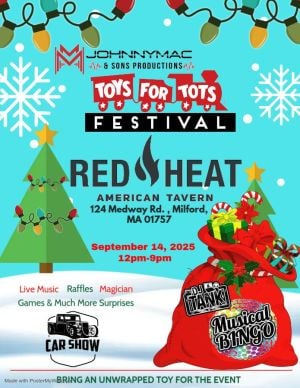 Come join us for the second time at Red Heat Tavern in Milford for a funday Sunday to celebrate the 8th annual Toys for Tots Festival.Please bring an unwrapped toy for amazing raffles.