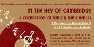 The Cambridge Museum of History & Culture and Office of Mayor E.Denise Simmons invite you to the opening reception of In the Key of Cambridge: A Celebration of Music & Music Venues.