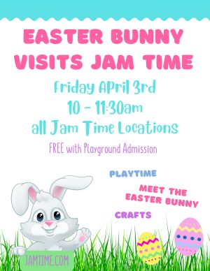 The Easter Bunny is coming to all Jam Time locations so hop on over for a morning of playtime, spring crafts, sweet treats and photo opportunities with the Easter Bunny!This event is free with normal playground admission and no reservations required!