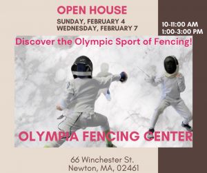Join us for a fun informative demo, and learn more about the Olympic sport of fencing.Olympia Fencing Center has a decade of raising fencing champions, starting with kids as young as eight years old, becoming National Champions, all the way to the Youth Olympics!