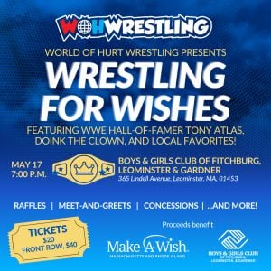 Tickets start at $20 ($40 for front row) and proceeds benefit Make-A-Wish Massachusetts and Rhode Island and its mission of granting life-changing wishes for local children with critical illnesses, as well as the Boys & Girls Club of Fitchburg, Leominster & Gardner.