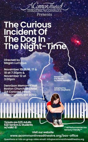 A Common Thread Theatre Company proudly presents its Fall production “The Curious Incident of the Dog in the Night-time.” Winner of the 2015 Tony Awarding for Best Play and based on acclaimed author Mark Haddon’s novel.“This adaptation by the acclaimed playwright Simon Stephens is intensely, innately theatrical; it is also funny and extremely moving…resonates with quality.” —Telegraph (London).