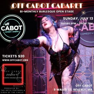 Off Cabot Cabaret is a new submission based, bi-monthly burlesque open stage brought to you by The Betsi Feathers & Siren of the Circle.A space on the North Shore for performers try out new material, foster growth, and hone their craft in a supportive, creative environment.