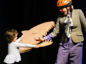 Together, you’ll crumple up paper, fend off cardboard sharks, draw pictures, sing songs, and more in “Please Ship This Wet Gift” — a very funny show about feeling terrible!