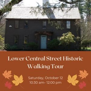 This unique tour covers the Shawsheen River area of Central Street including an early 20th century canoe club, Master Foster - headmaster of a boy’s school, a short trek through 2 AVIS properties, architecture and a large political event that featured Daniel Webster, 19th century politician and orator.Duration: 1 1/2 hours Terrain: Easy sidewalks and some wooded trails Registration is required Cost: Pay what you like Limited to 4-12 participants